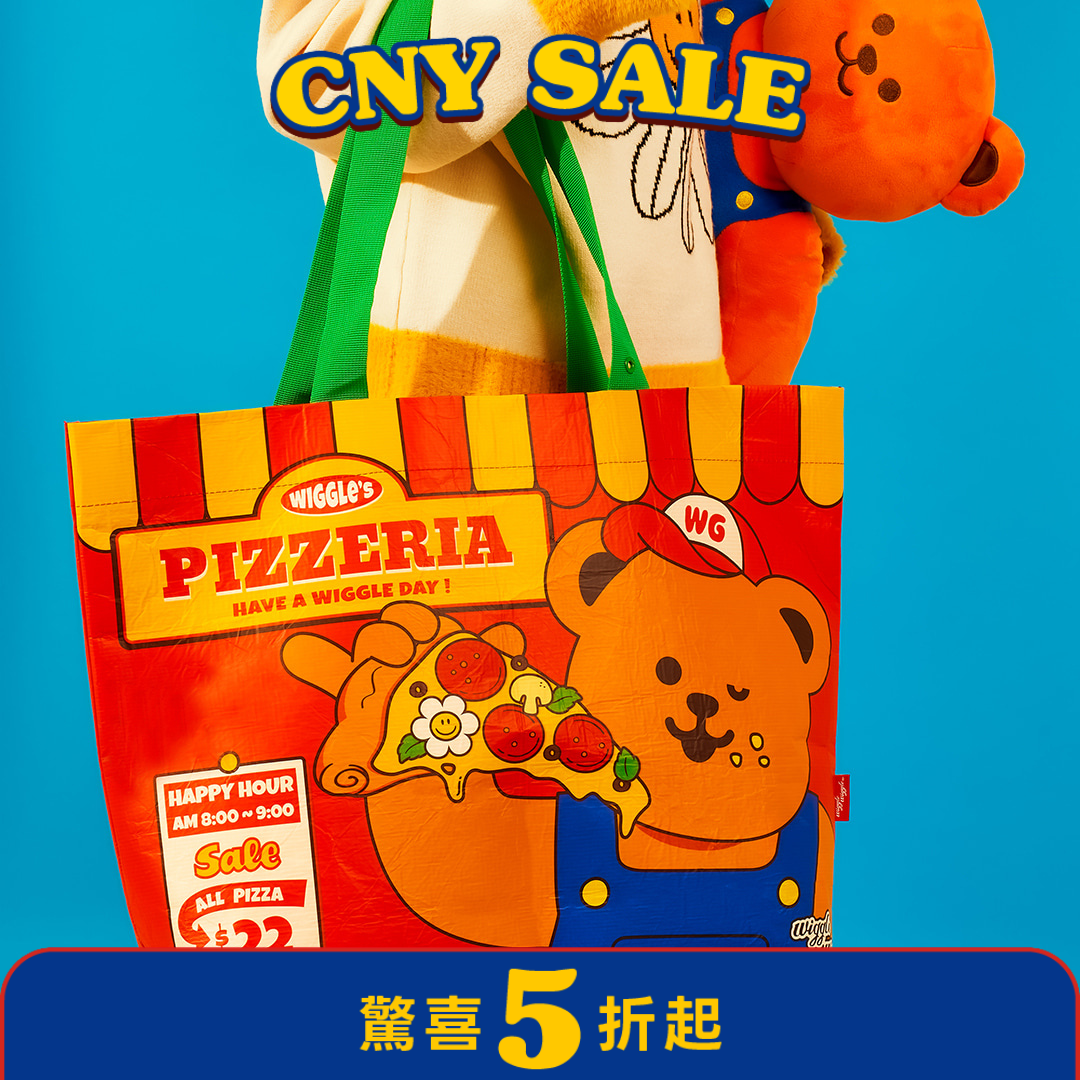 - 印有Wiggle Wiggle 的代表圖案小熊,是一款輕便、堅固的購物袋。